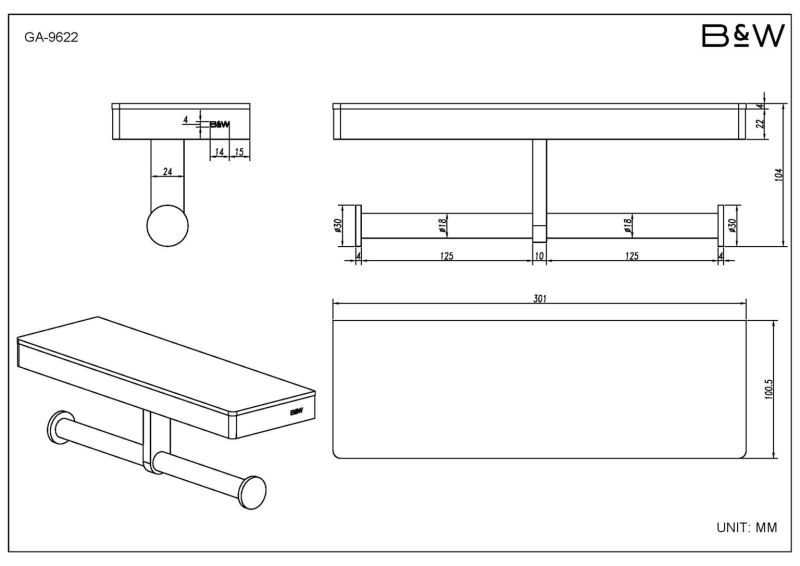 Полка и держатель для туалетной бумаги Black and White Gravity 9620GM хромКоллекция выполнена в двух цветовых решениях CHROME и GUN METAL. Благодаря использованию закаленного стекла, каждая деталь аксессуара приобретает свое уникальное отражение. В цветовом решении GUN METAL используется черное стекло. Для удобства пользования, на концах держателя для туалетной бумаги использованы стопоры, которые не позволяют рулоны слетать при использовании. Коллекция выполнена из надежных материалов: латунь и закаленное стекло, именно это позволяет не беспокоиться о надежности и увеличенном сроке службы каждого изделия.