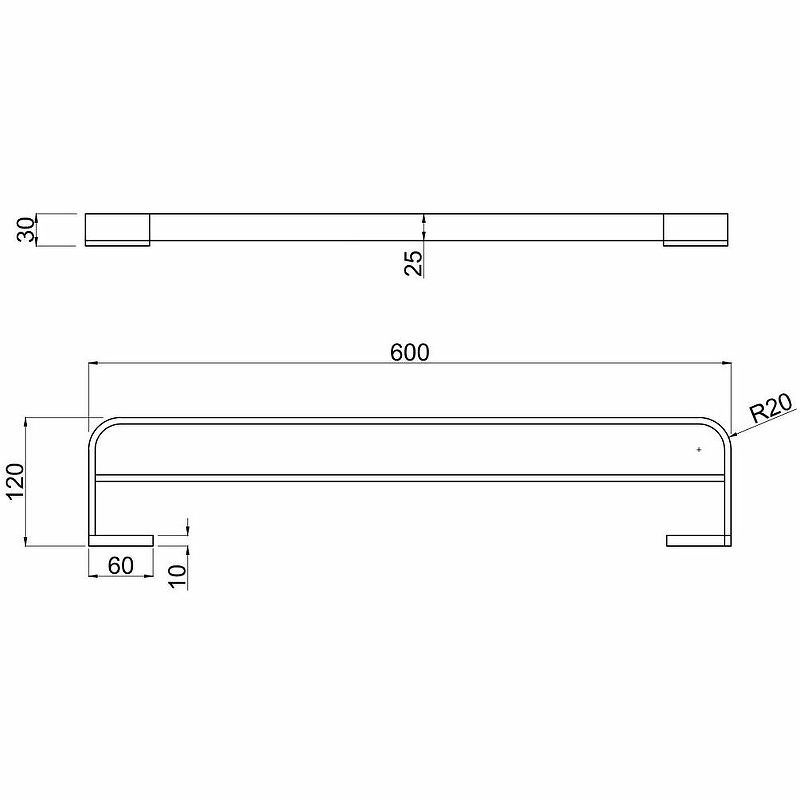 Размеры (ШхВхГ): 600х30х120 мм.