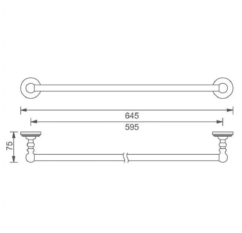 Держатель для полотенец Aquanet 4624 (60 см) - стильный аксессуар в золотой огранке. Ярким элементом в нем является живописная с точеными линиями деталь, которая с одной стороны является держателем для других составляющих модели, с другой – местом, в котором прячутся все крепления аксессуара к стене. Элемент, начинающийся с круглого основания, словно нанизывая на себя детали разных форм, завершается эффектным шаром. В данной модели таких элемента два и они выполняют роль держателя штанги для полотенец длиной 60 см. Аксессуар рассчитан на размещение одного полотенца. Для крепления к стене предусмотрена надежная система, скрытая от глаз в декоративных элементах.