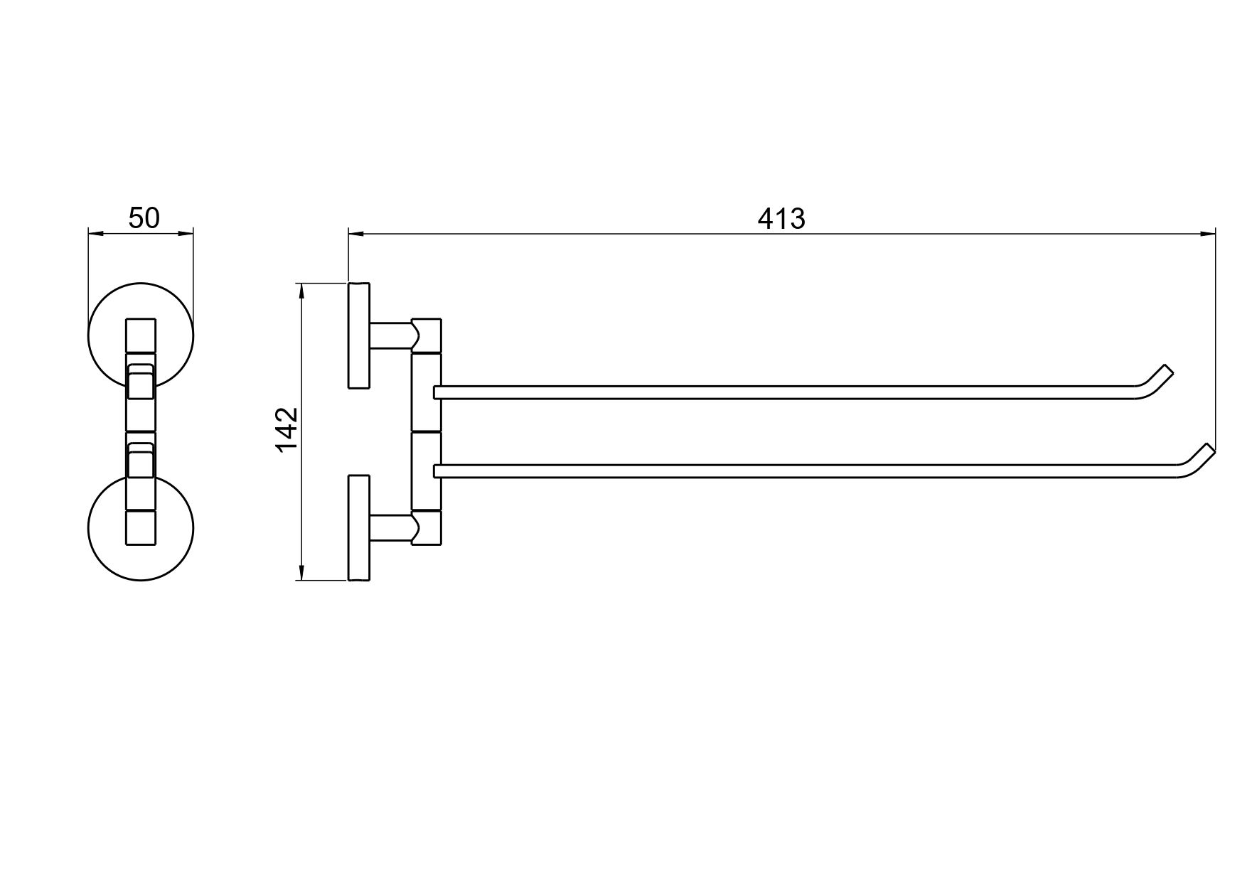 Общий размер (мм): 413*50*142Основной материал: латуньМонтаж: на стенуМетод крепления: шурупыНазначение: аксессуарыПоворотный: даКоличество полок / перекладин: 2Тип продукта: полотенцедержательГарантия (лет): 5