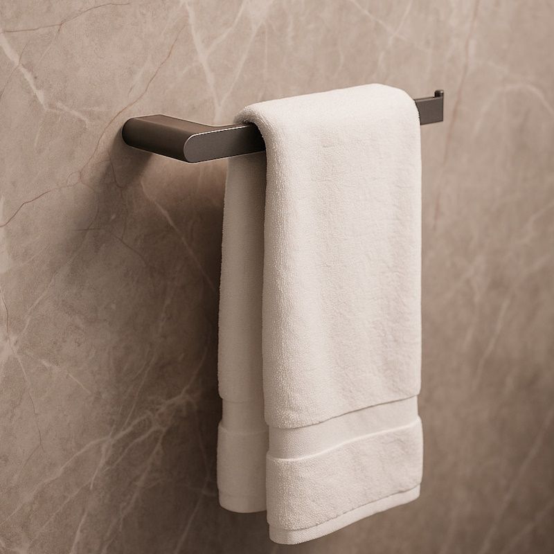 Эстетика и прочность в одном: держатель из вороненой стали с антиследовым покрытием. Надежно держит полотенца, прост в установке и сохраняет первозданный вид на долгие годы.
