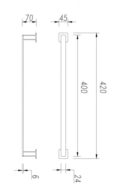 • ширина: 42 см, высота: 4,5 см, расстояние от стены: 7 см