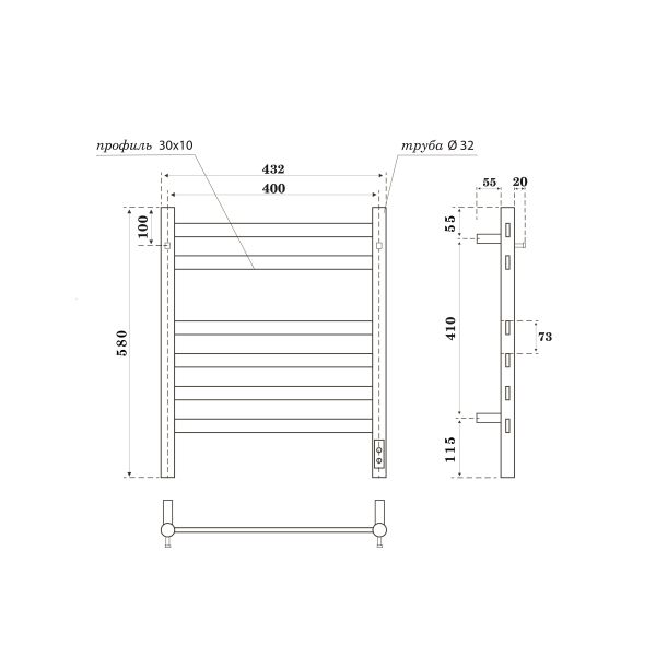 Полотенцесушитель электрический APEXTERMO Sfera SF10184BM 800x400 с крючками черный матовый Подробнее