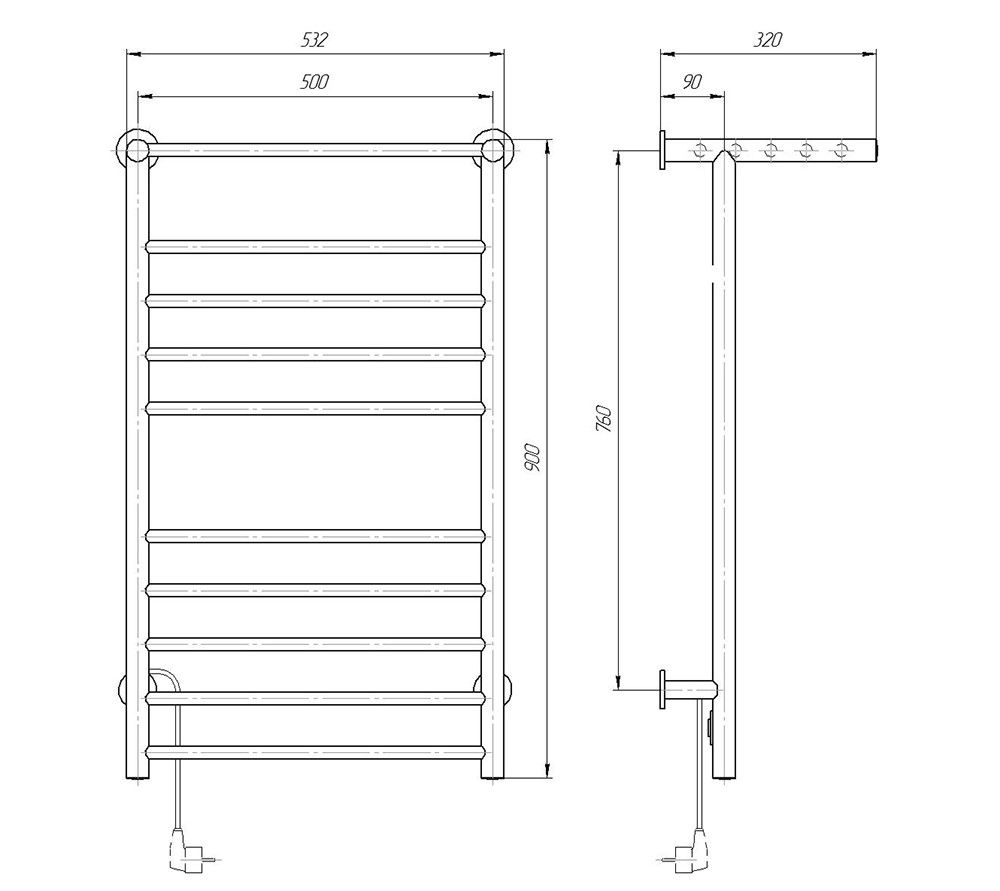 Полотенцесушитель электрический Domoterm Аврора DMT 109-Т5 П10 50x90 EK L с полкой хром