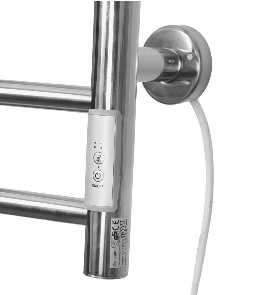 Полотенцесушитель оснащён таймером автоотключения на 2 и 4 часа Встроенный термодатчик снижает уровень энергопотребления и увеличивает безопасность эксплуатации и срок службы.