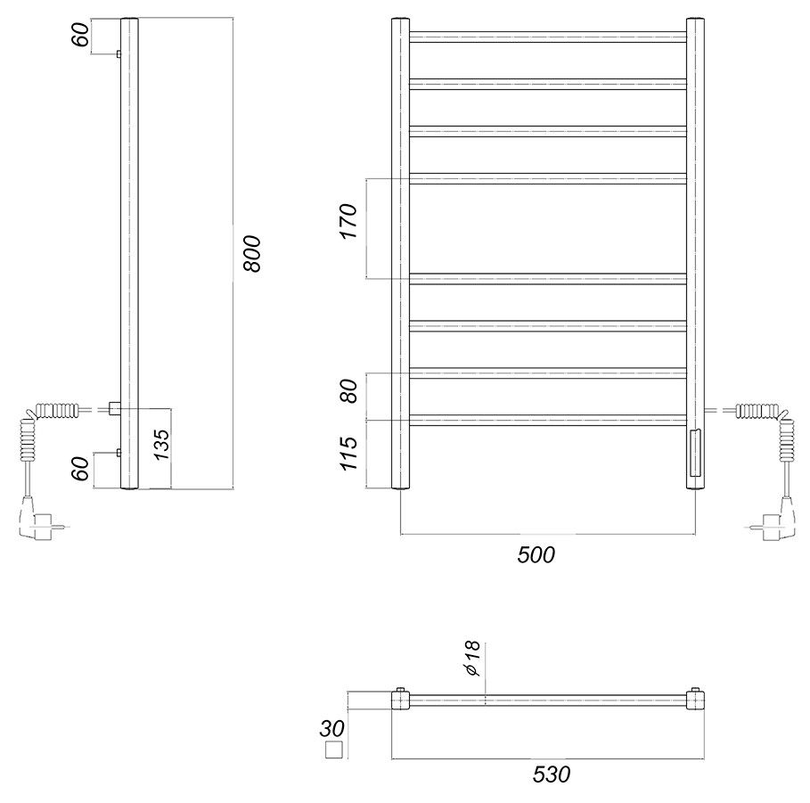 М/о расстояние (межосевое расстояние): 500Количество перекладин: 8Коллекция: КубаТип: электрическиеЦвет: черныйМощность, Вт: 110Ширина (мм): 532Высота (мм): 800Глубина (мм): 80-90Вес: 5,4Объем: 0,04Тэн/подключение: справаСтрана: РоссияГарантия: 2 года