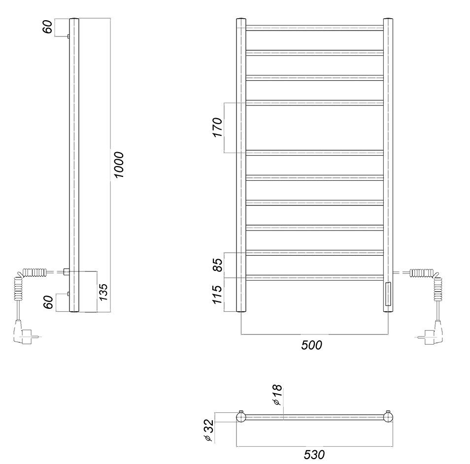М/о расстояние (межосевое расстояние): 500Количество перекладин: 10Коллекция: МедеяТип: электрическиеЦвет: белыйМощность, Вт: 113Ширина (мм): 532Высота (мм): 1000Глубина (мм): 83-93Вес: 6,7Объем: 0,075Тэн/подключение: справаСтрана: РоссияГарантия: 2 года