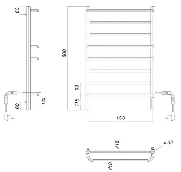 М/о расстояние (межосевое расстояние): 500Количество перекладин: 8Коллекция: ОрфейТип: электрическиеЦвет: хромМощность, Вт: 100Ширина (мм): 532Высота (мм): 800Глубина (мм): 175-165Вес: 4,2Объем: 0,04Тэн/подключение: справаСтрана: РоссияГарантия: 2 года