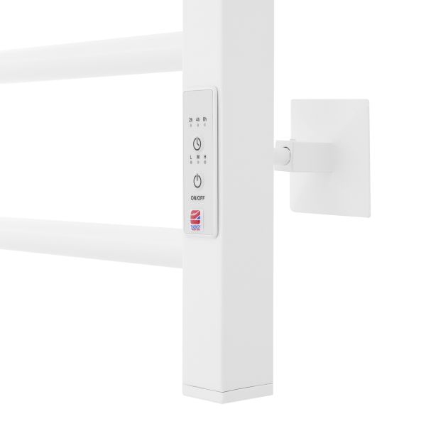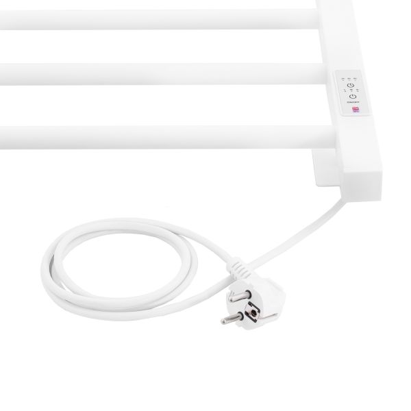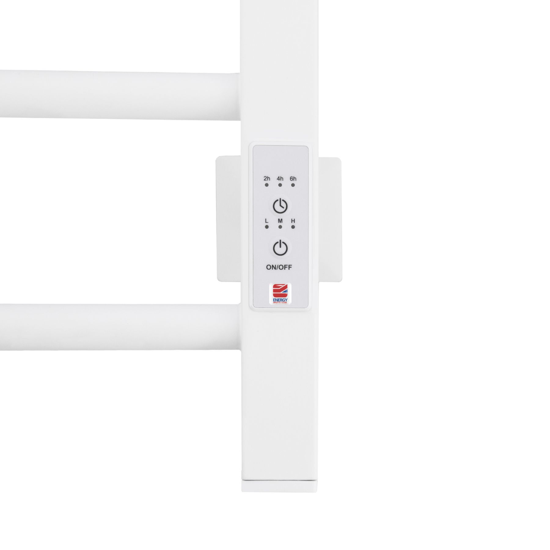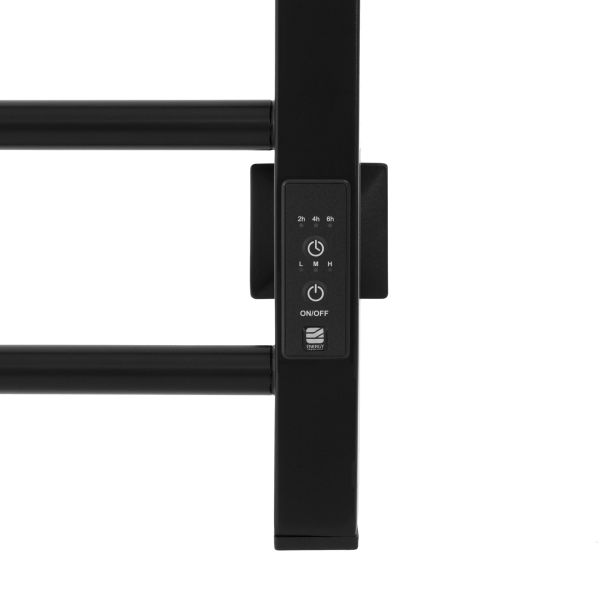 Energy Relo – электрический полотенцесушитель-лесенка с терморегулятором и таймером, отличающийся необычной формой: вертикальные трубы имеют квадратное сечение, горизонтальные перемычки - круглое сечение. Нагревается за счет безопасного греющего кабеля в изоляции.Полотенцесушитель оснащен блоком управления с удобной регулировкой мощности (60%, 80% и 100%), а также времени отключения (через 2, 4 или 6 часов). Благодаря невысокой мощности имеет низкий расход электроэнергии. Подключается скрытым или наружным способом.Характеристики:
