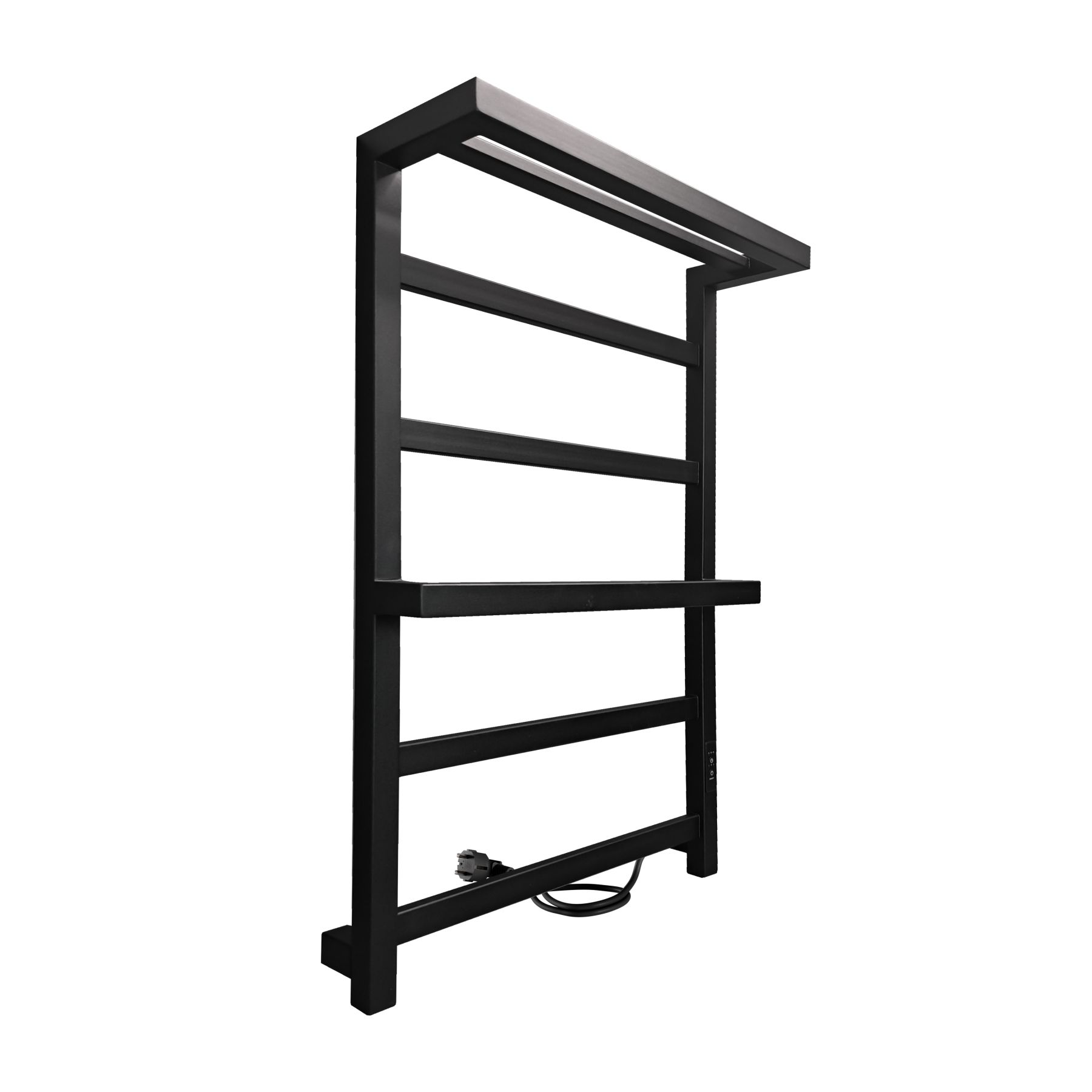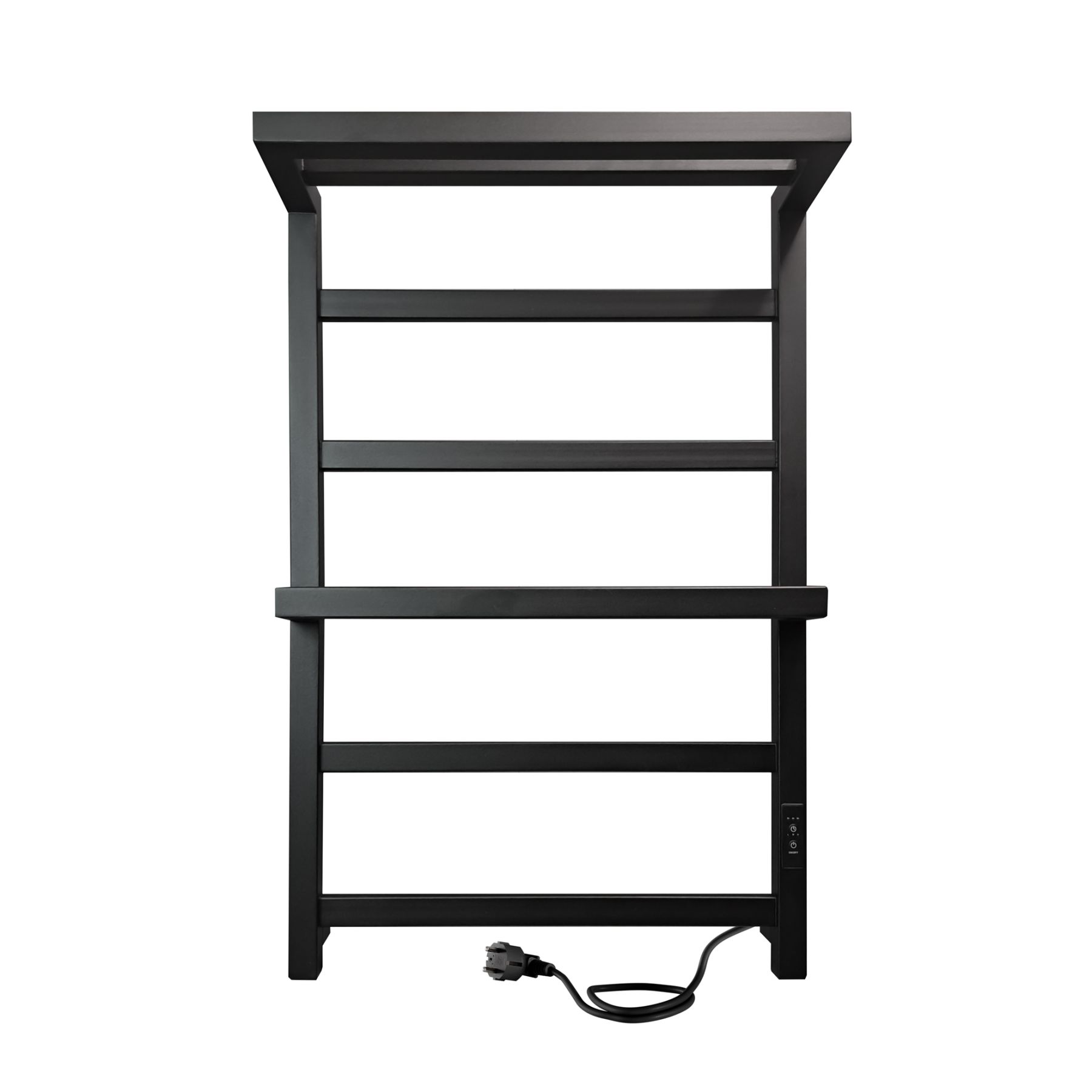 Полотенцесушитель электрический INDIGO Forte в размере 800х500 (ВхШ) в цвете черный матовый. Профильный полотенцесушитель с полкой, имеет одну скобообразную перекладину, на которой удобно будет разместить большое полотенце или другой текстиль на просушку. Модель имеет терморегулятор нагрева, у которого три режима: 40, 45, 50 градусов и таймер на отключение через 2, 4, 6 часов. Подключение осуществляется двумя способами: скрытое подключение к электропроводке через модуль скрытого подключения в стену или прямым электропроводом. Длина прямого провода 1,1 метр. Изделие окрашено порошковой краской по специальной технологии, которая придает ему матовое, тактильно приятное покрытие, без разводов во время эксплуатации. Специальная технология нагревательного кабеля защищает полотенцесушитель от перегрева, что влияет на длительные сроки службы. В комплектации идут 4 телескопических держателя, комплект монтажа и гарантийный паспорт.
