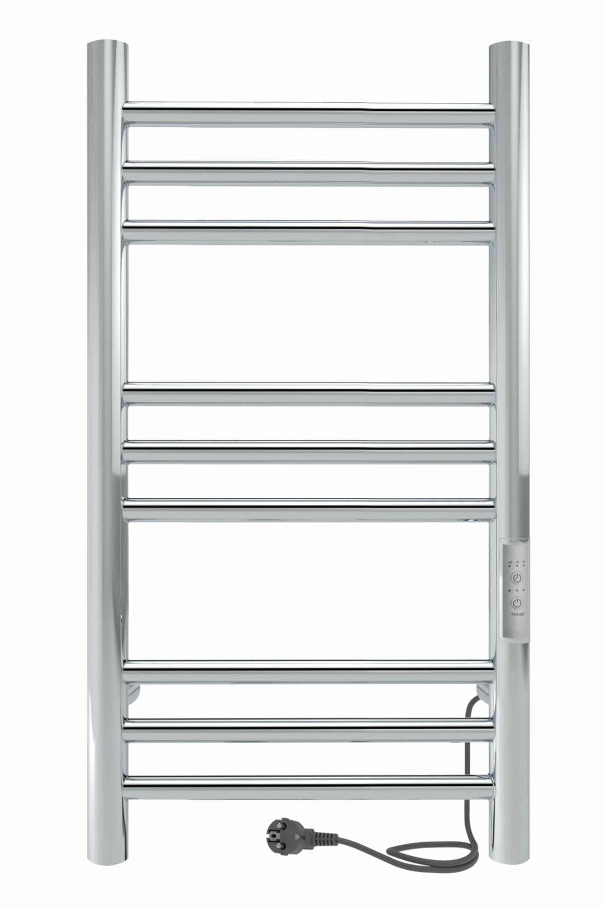Модель имеет терморегулятор нагрева, у которого три режима: 40, 45, 50 градусов и таймер на отключение через 2, 4, 6 часов.  Полотенцесушитель с терморегулятором удобен тем, что температуру можно настроить под себя и установить таймер по времени для самостоятельного выключения изделия.
