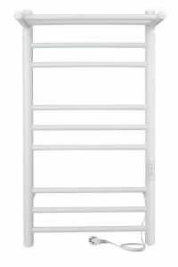 Полотенцесушитель с терморегулятором и полкой в белом матовом цвете. Изделие имеет 8 перекладин,... Подробнее