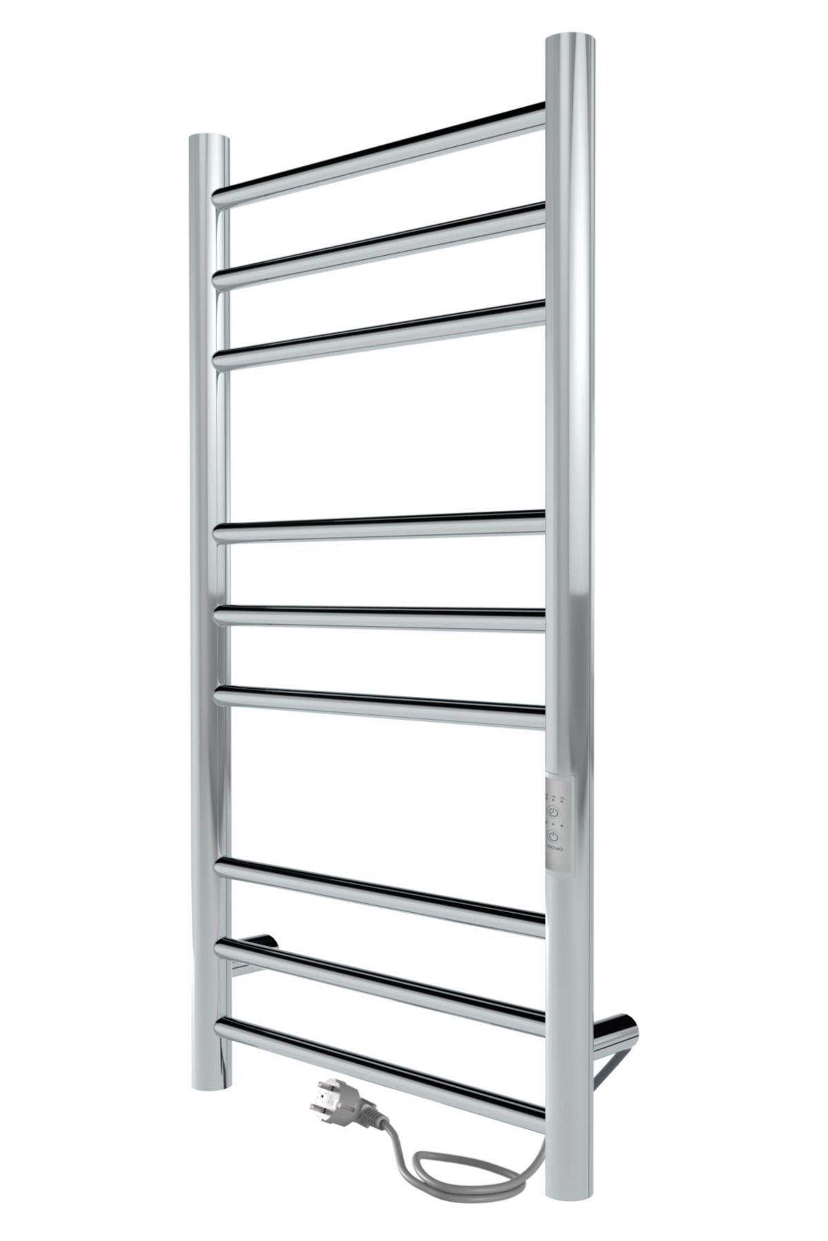Модель имеет терморегулятор нагрева, у которого три режима: 40, 45, 50 градусов и таймер на отключение через 2, 4, 6 часов.  Полотенцесушитель с терморегулятором удобен тем, что температуру можно настроить под себя и установить таймер по времени для самостоятельного выключения изделия.