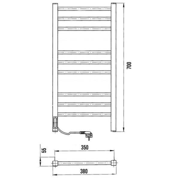 Полотенцесушитель электрический Laris Астор ЧКЧ9 350х700 L 73207864 Черный муар