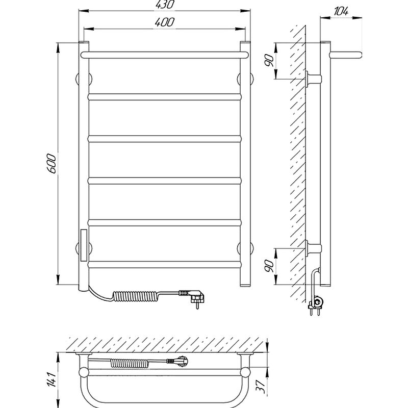 Полотенцесушитель электрический Laris Прайм ЧКЧ П6 400x600 L 73207592 Черный муар купить