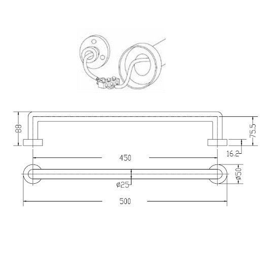Материал - латунь, круглая латунная труба: Ø25 мм, выступ: 88 мм, электрическое подсоединение скрытое, без выключателя, расстояние между центрами: 450 мм, монтаж: горизонтальный, цвет OLD COPPER.