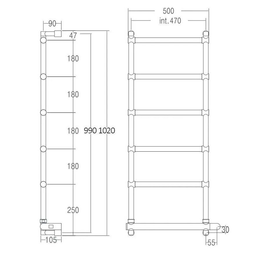 Полотенцесушитель электрический Margaroli Sole 512/6/530 Switch Black Matt DB 99x53 см чёрный матовый