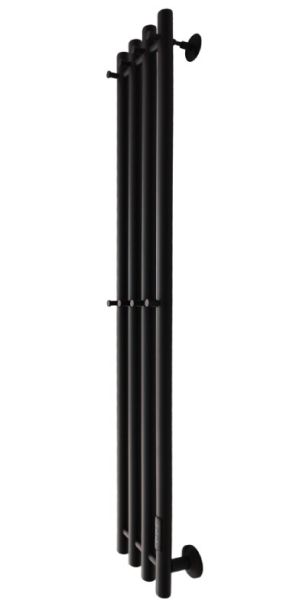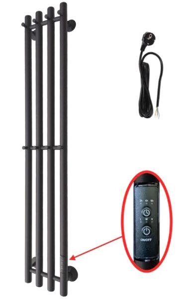 Полотенцесушитель предназначен для сушки тканевых изделий и обогрева ванных и душевых.На корпусе полотенцесушителя размещено 8 крючов: 4 сверху, 4 по центру. Порошковое напыление позволяет окрасить изделие в цвет - Черный RAL 9005 (матовый). Порошковая окраска полотенцесушителя позволяет получить качественное и надежное полимерное покрытие. Черный RAL 9005 (матовый) не только впишется в изысканный дизайн вашей ванной комнаты, он будет притягивать взгляды и прикосновения. Покрытие - матовое, на ощупь очень схоже с покрытием «Soft Touch» . На изделии не остается ни пятен, ни разводов после пользования. В уходе данная поверхность неприхотлива, достаточно протереть влажной или сухой салфеткой из микрофибры. Закажите прямо сейчас изделие в черном матовом цвете, ловите восхищенные взгляды гостей и получайте истинное удовольствие от вашего полотенцесушителя на все 100%.Комплектация:Телескопическое крепление без кольца - 3 шт;Комплект скрытого монтажа - 1 шт;кабель с вилкой 220В - 1 шт