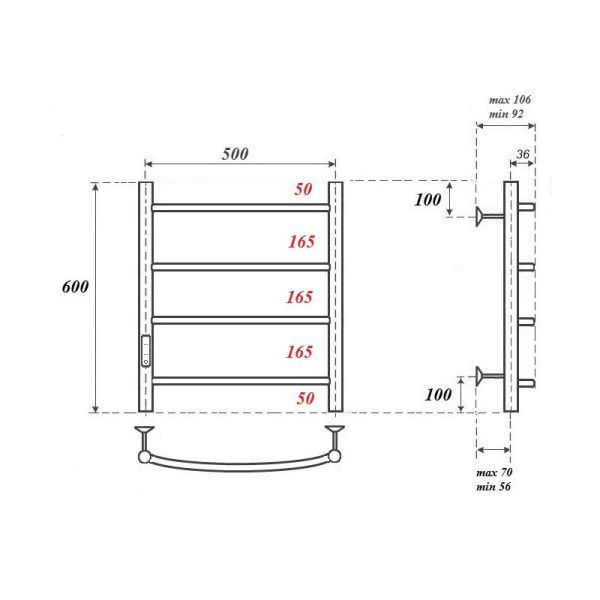 Полотенцесушитель электрический Point Афина PN04756B 50x60 см черный