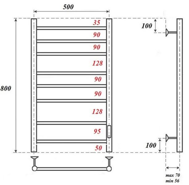 Полотенцесушитель - 1 шт, кронштейны для крепления к стене - 3 шт, сетевой кабель - 1 шт, комплект скрытого подключения - 1 шт, паспорт/гарантийный талон - 1 штПолотенцесушители оборудованы блоками управления с таймером и возможностью регулировки температуры.