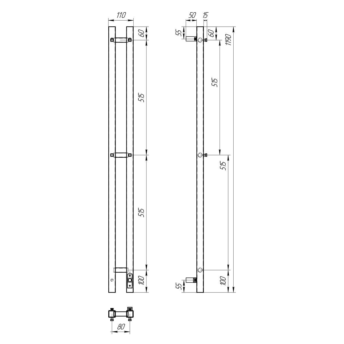 Полотенцесушитель электрический Point Гермес PN13812GB П3 80x1200 диммер справа графит блеск купить
