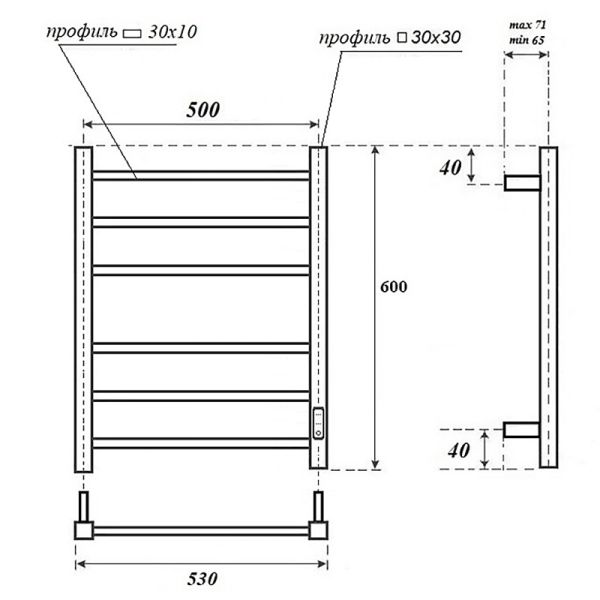 Полотенцесушитель электрический Point Меркурий П6, ширина 50 см, высота 60 см, диммер справа, белый, PN83856WКоличество секций - 6