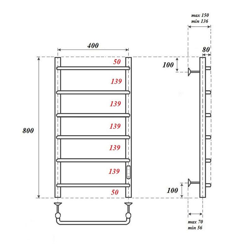Полотенцесушитель электрический Point 40x80 см черный PN08848BТип изделия: электрический полотенцесушитель