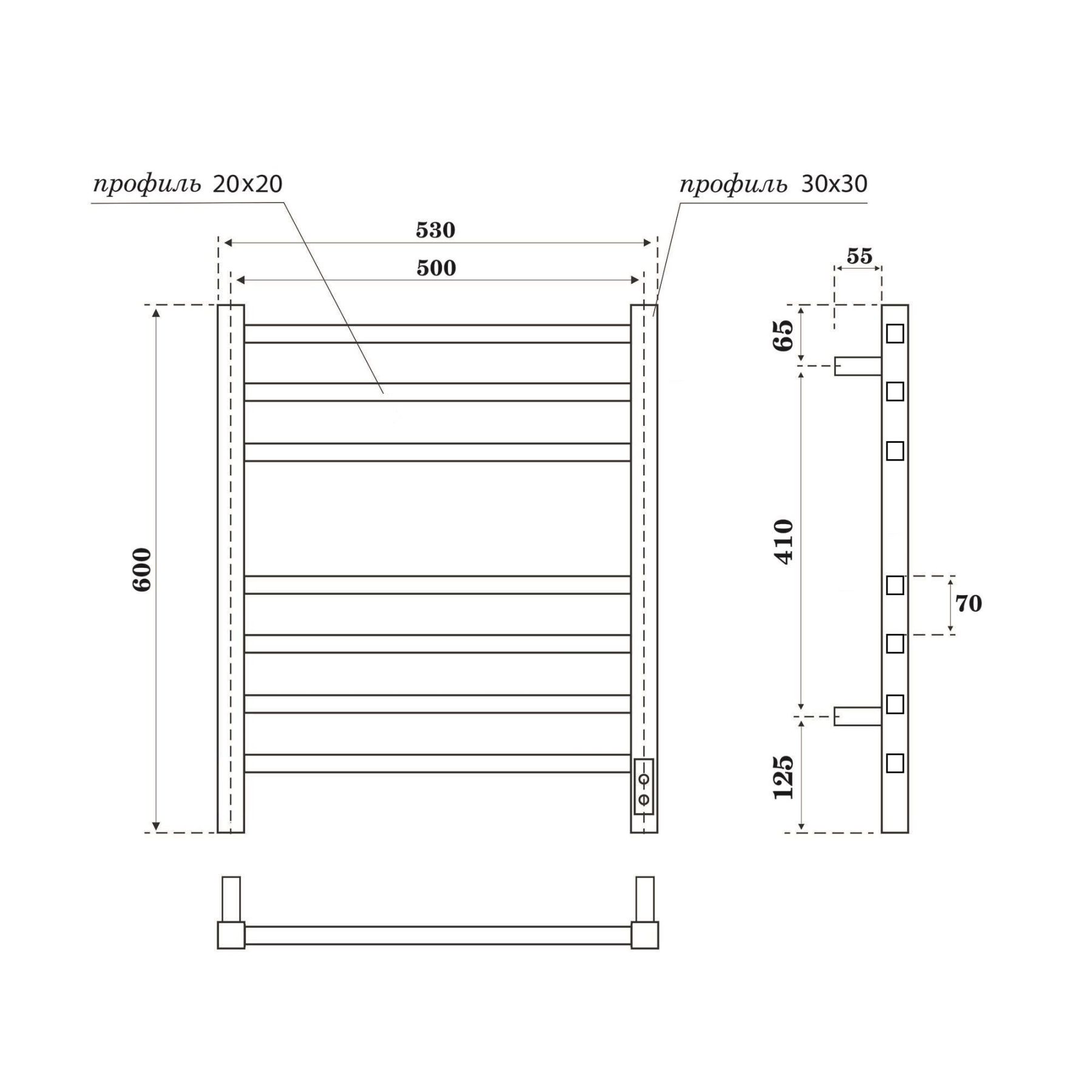 Полотенцесушитель электрический Point Вега PN71856GB П7 500x600, диммер справа графит блеск купить