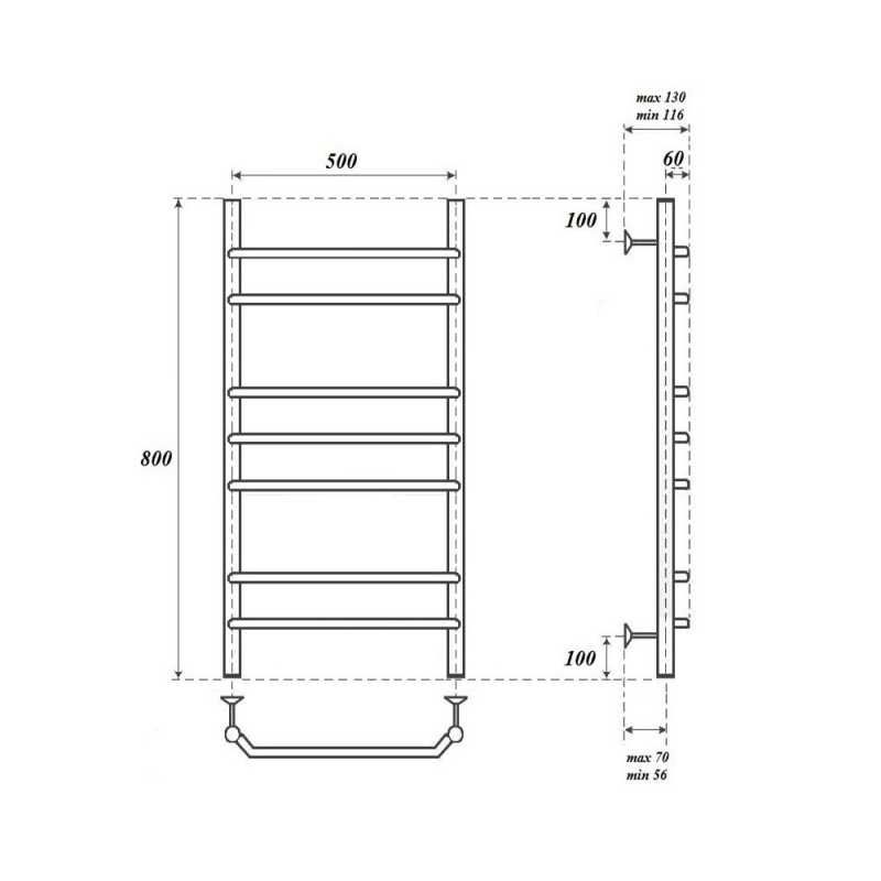 Полотенцесушитель электрический Point PN07158E П7 500x800 левый/правый, хром Подробнее