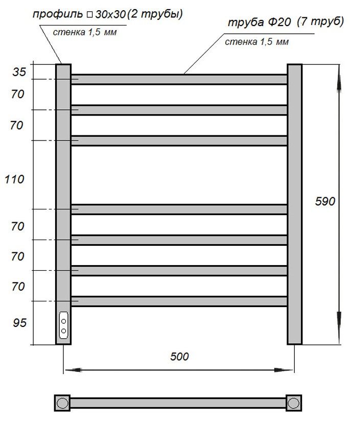 Электрические полотенцесушители с греющим кабелем Веста в цвете бронза