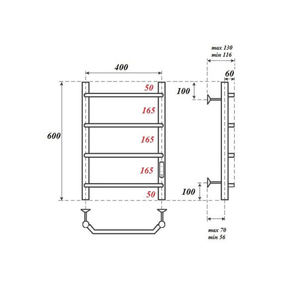 Полотенцесушитель электрический Point PN06846 П4 400x600 диммер справа, хромКомплектация: