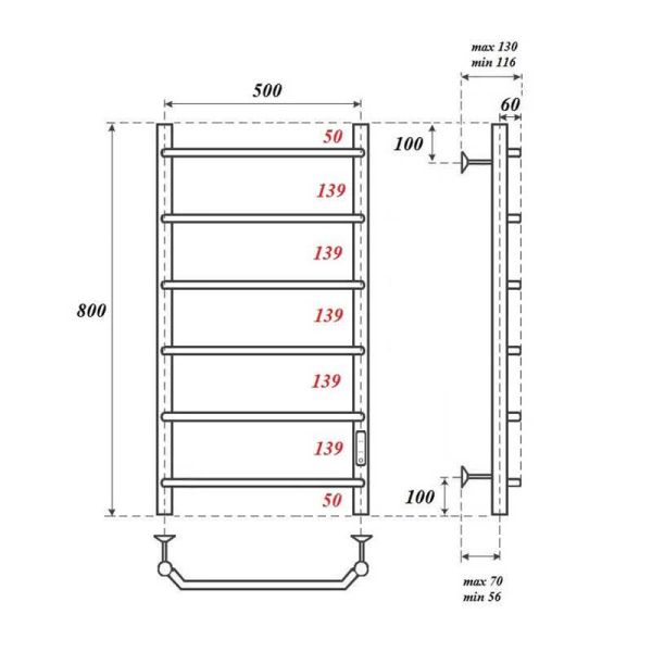 Полотенцесушитель электрический Point PN06858 П6 500x800 диммер справа, хромКомплектация: