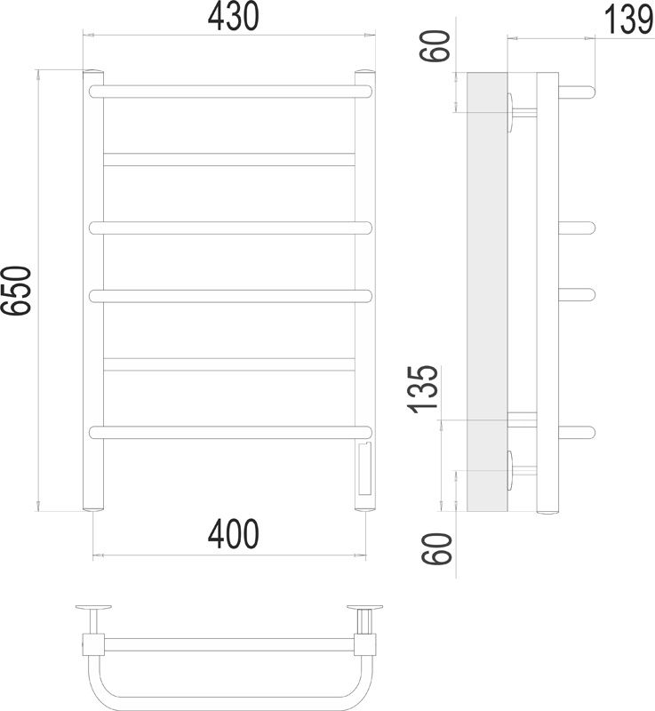 Полотенцесушитель электрический Terminus Евромикс П6 450х650, ширина 43 см, высота 65 см, 4670078531223