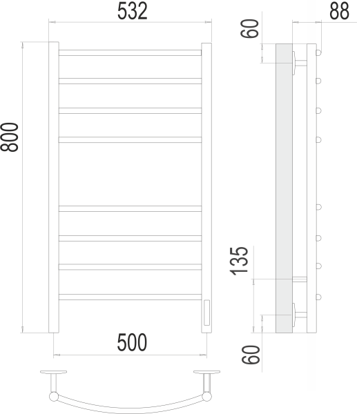 Полотенцесушитель электрический Terminus Классик П8 500х800 электро КС 9003 матовый