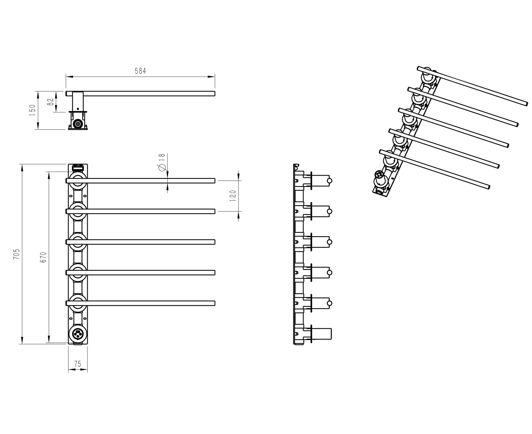 Полотенцесушитель электрический встраиваемый WONZON & WOGHAND DORTMUND, Брашированный никель (WW-A365-BR)