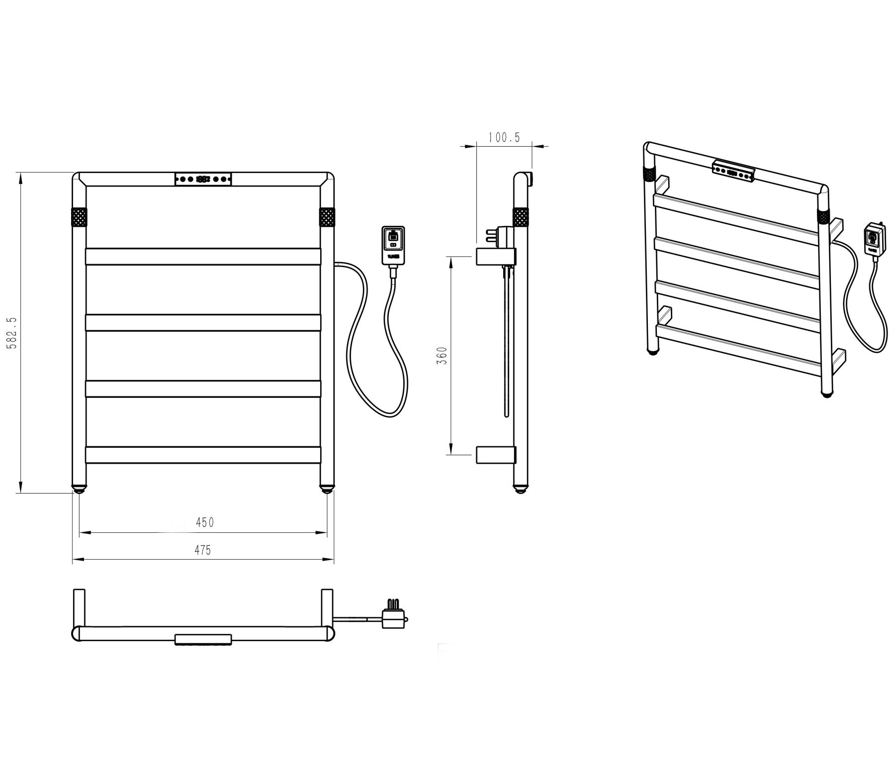 Полотенцесушитель электрический WONZON & WOGHAND KÖLN, Темный графит (WW-A6014-GM)