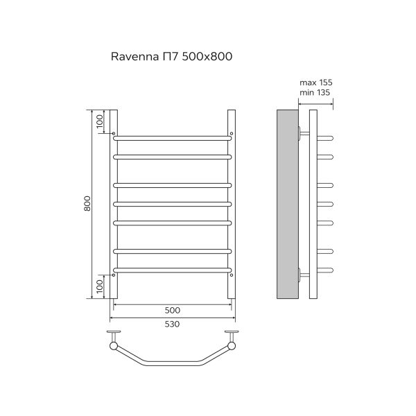 Полотенцесушитель водяной AZARIO RAVENNA AZ07158 500/800 7 секций, нижнее/диагональное подключение, 1/2, хром купить