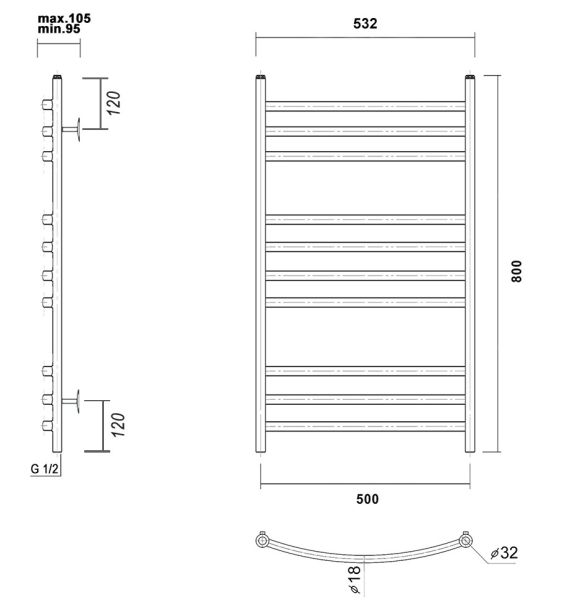 М/о расстояние (межосевое расстояние): 500Количество перекладин: 10Коллекция: КалипсоТип: водяныеЦвет: золотоШирина (мм): 532Высота (мм): 800Глубина (мм): 105-95Вес: 4,95Объем: 0,0701Тэн/подключение: нижнееСтрана: РоссияГарантия: 10 лет