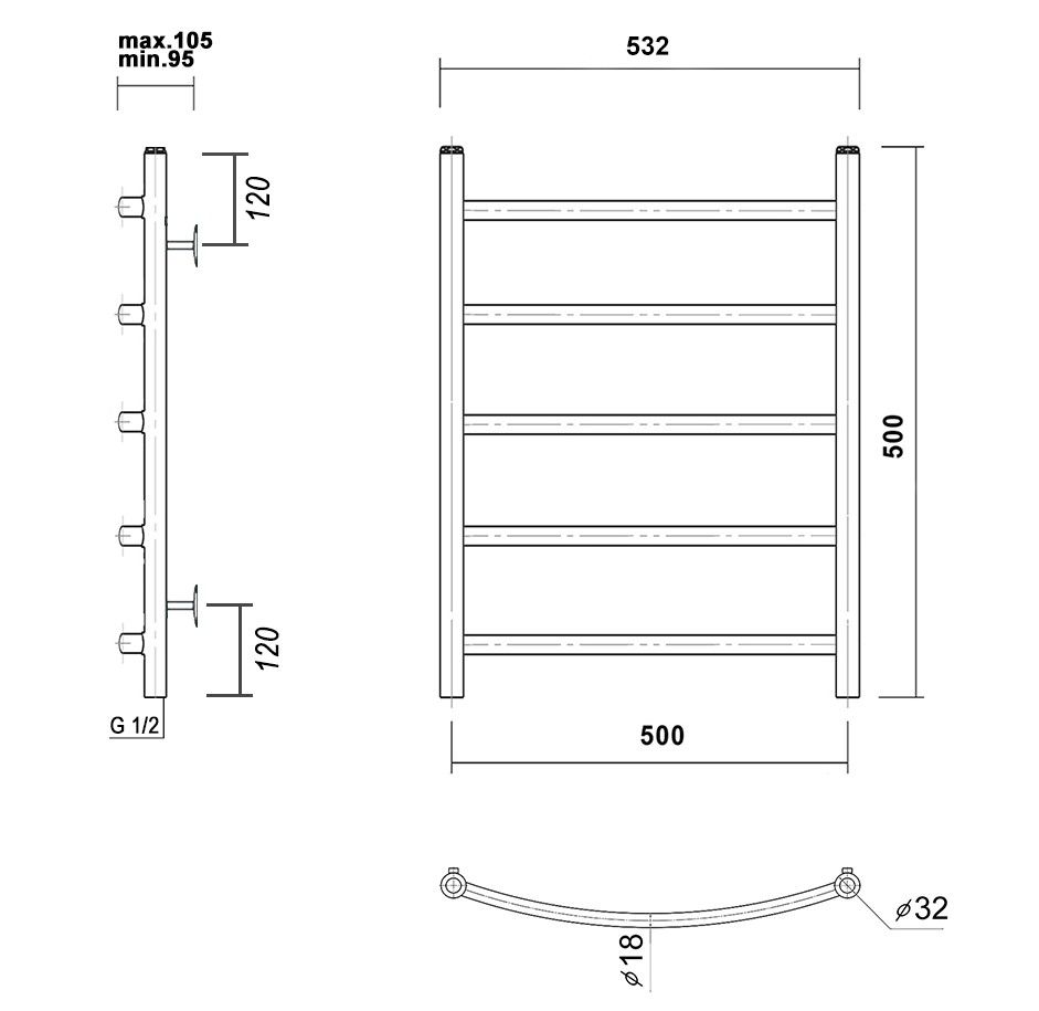 М/о расстояние (межосевое расстояние): 500Количество перекладин: 5Коллекция: КалипсоТип: водяныеЦвет: золотоШирина (мм): 532Высота (мм): 500Глубина (мм): 105-95Вес: 3,79Объем: 0,045375Тэн/подключение: нижнееСтрана: РоссияГарантия: 10 лет