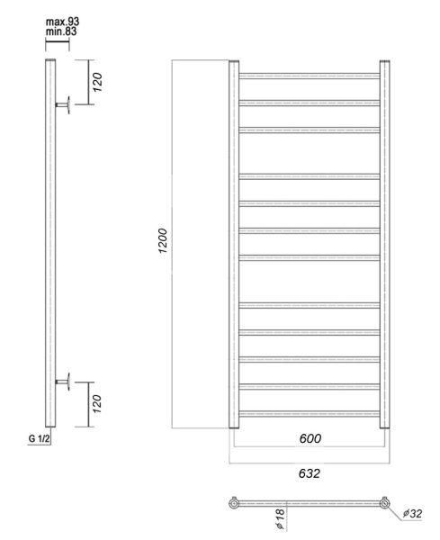 М/о расстояние (межосевое расстояние): 600Количество перекладин: 12Коллекция: МедеяТип: водяныеЦвет: хромШирина (мм): 632Высота (мм): 1200Глубина (мм): 90/80Вес: 8,2Объем: 0,06825Тэн/подключение: нижнееСтрана: РоссияГарантия: 10 лет