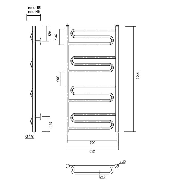 Водяной полотенцесушитель из нержавеющей пищевой стали.