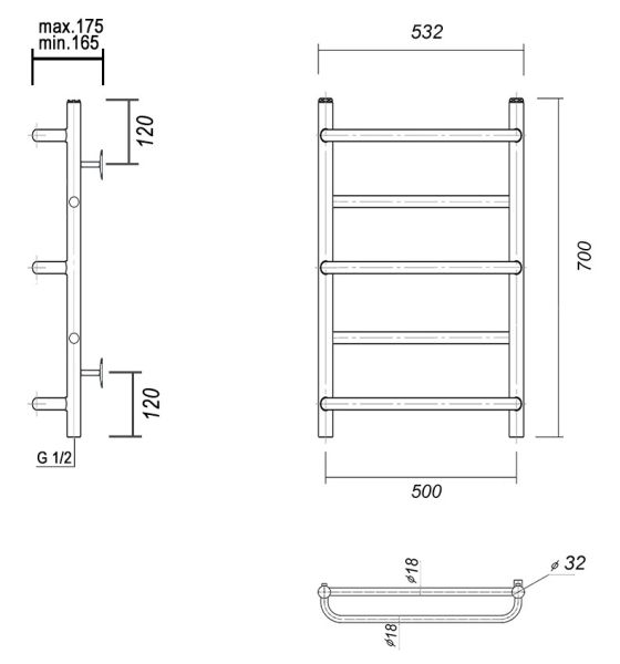 М/о расстояние (межосевое расстояние): 500Количество перекладин: 5Коллекция: ОрфейТип: водяныеЦвет: хромШирина (мм): 532Высота (мм): 700Глубина (мм): 175-165Вес: 4,2Объем: 0,0465Страна: РоссияГарантия: 10 лет