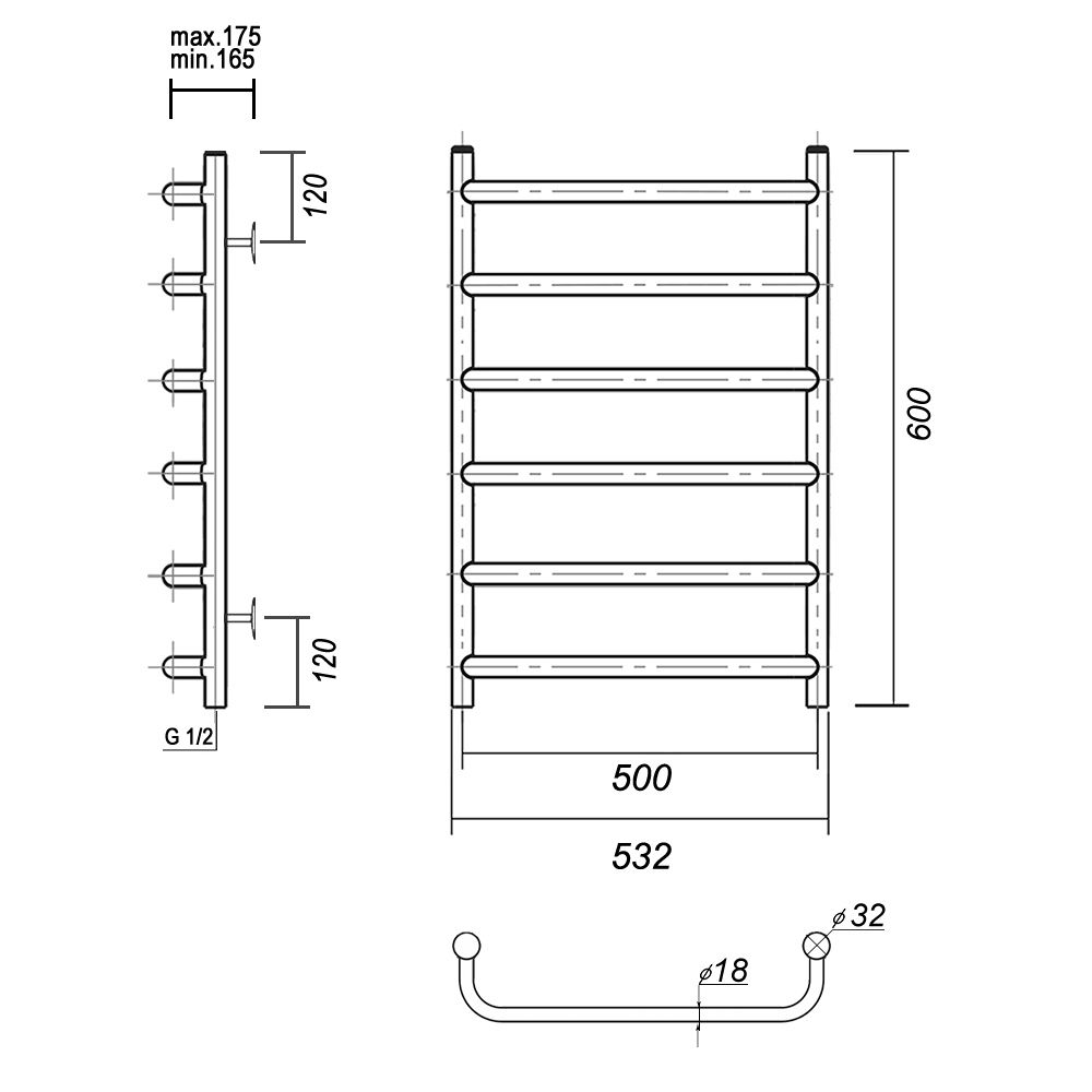 М/о расстояние (межосевое расстояние): 500Количество перекладин: 6Коллекция: СтефаноТип: водяныеЦвет: хромШирина (мм): 532Высота (мм): 600Глубина (мм): 175-165Вес: 4,2Объем: 0,0401Тэн/подключение: нижнееСтрана: РоссияГарантия: 10 лет