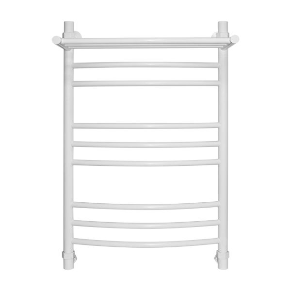 Водяной полотенцесушитель Energy Prestige Modus 800x500 RAL 9016 (белый матовый) - «лесенка c полкой» c выпуклыми перемычками, размещёнными группами. Дополнительная обогреваемая полка с 3 перекладинами увеличивает тепловую мощность и полезную площадь прибора, а также позволяет максимально удобно располагать на нем вещи для просушивания. Используется во всех системах горячего водоснабжения и отопления с рабочим давлением 3 - 15 атм при температуре теплоносителя до 105°С.Межцентровое расстояние: 800 мм (+/-5 мм) при боковом и диагональном подключении, 500 мм (+/-5 мм) при нижнем подключении.В комплектацию входят эксцентрики, позволяющие отрегулировать межцентровое расстояние.Полотенцесушитель изготовлен из высококачественной импортной пищевой нержавеющей стали марки AISI 304 (08Х18Н10). Поверхность изделия окрашена по технологии цветного порошкового напыления - достоинства этой технологии в том, что получаемые изделия прочны, долговечны и экологичны. Сварка швов выполнена по специальной технологии TIG по международному стандарту EN 10217-7. Полотенцесушитель испытан при давлении 50 атм, составляющая его труба — 150 атм, благодаря чему имеет большой запас прочности.Произведен в России. Гарантийный срок - 5 лет. Комплектуется всем необходимым для монтажа. Вся фурнитура производится итальянской фирмой Smart.Комплектация полотенцесушителя: