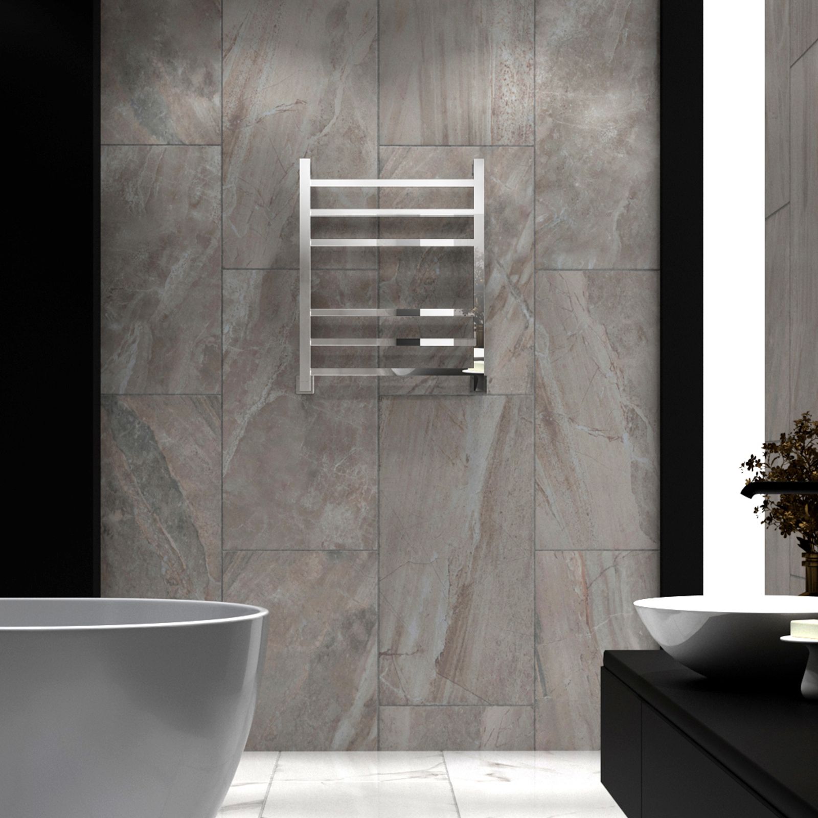 Изделие имеет возможность как нижнего, так и бокового и диагонального подключения за счет особенной конструкции полотенцесушителя.