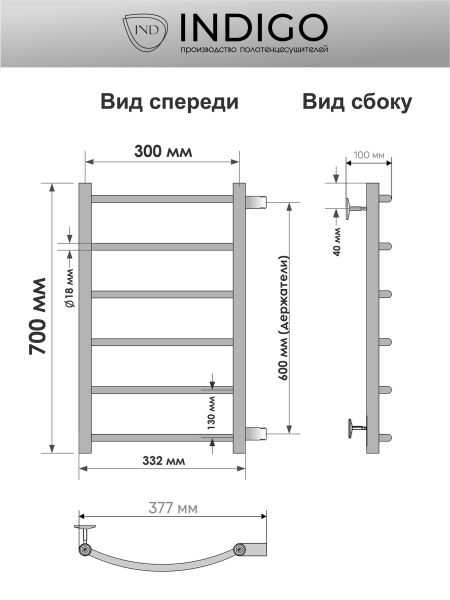 Полотенцесушитель водяной Indigo Arc LASW70-30BR-б/п-50 70x30 см чёрный муар купить