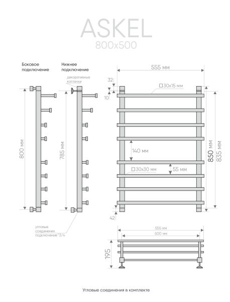 Askel это стильная современная профильная модель водяного полотенцесушителя, коллектор и перекладины выполнены из квадратной трубы