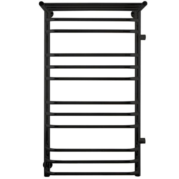 Полотенцесушитель водяной INDIGO Brace с полкой со скобообразными перекладинами и боковым подключением, выполнен в цвете «Черный Муар».  Полотенцесушитель с полками одна из самых популярных моделей, так как она позволяет дополнительно разместить на изделии полотенца и халаты.