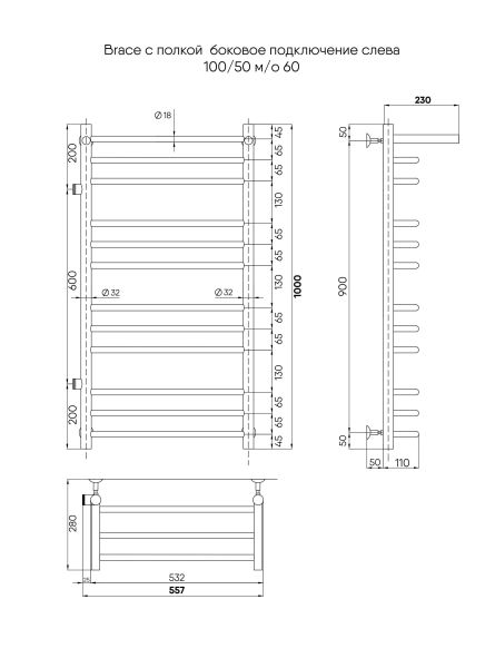 Полотенцесушитель водяной INDIGO Brace с полкой многофункционален и удобен в использовании.  Выбирают за его скобообразные перекладины и интересный стиль. Полотенцесушитель боковой изготовлен из высококачественной нержавеющей стали. Качественная металлообработка в местах подключений обеспечивает плотное прилегание прокладки.