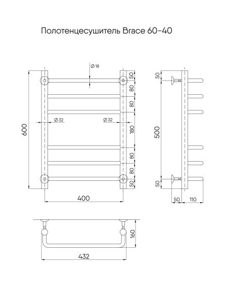 Полотенцесушитель водяной Indigo Brace LBCW60-40BR с полкой 60x40 см чёрный муар купить